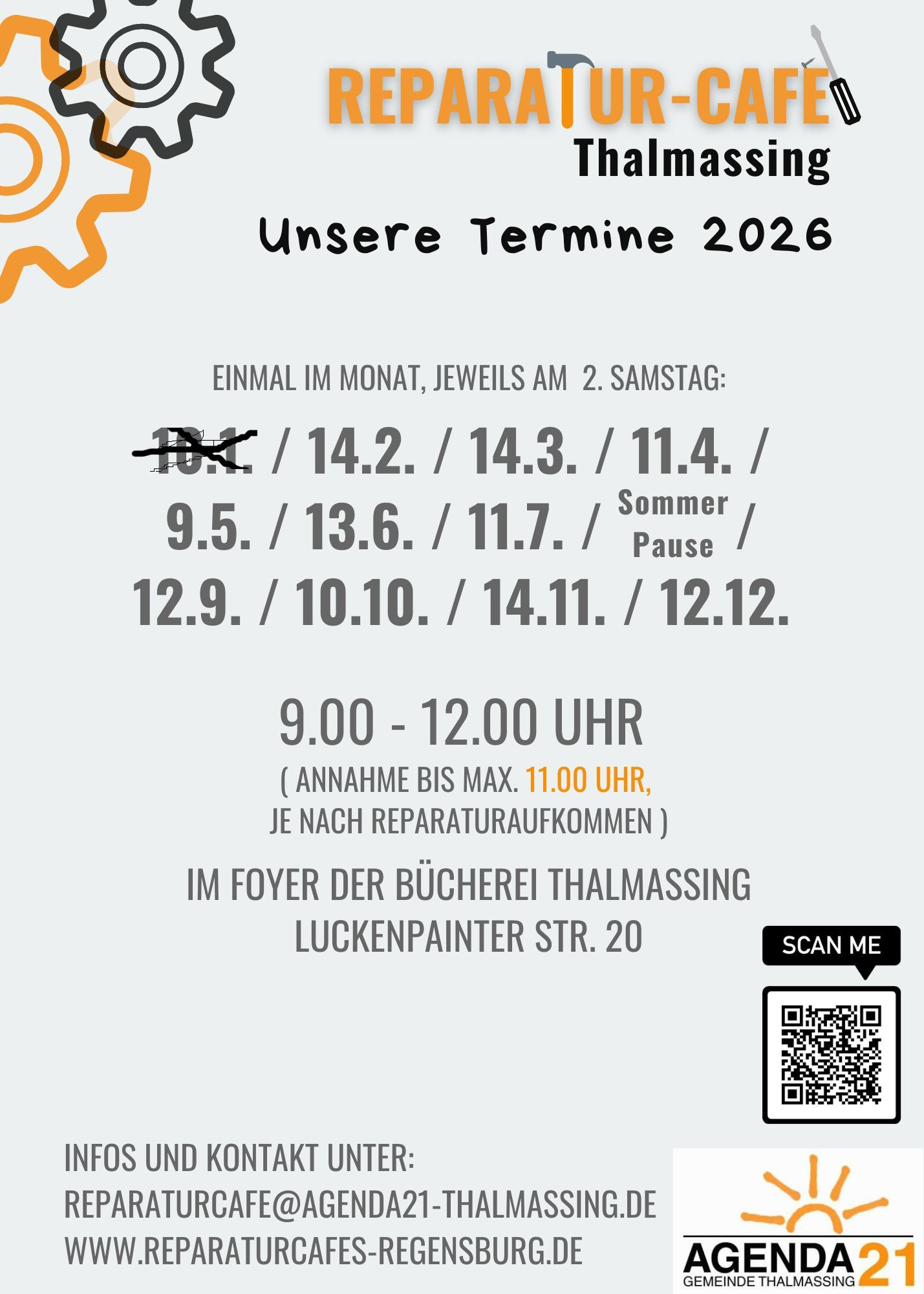 Wir laden zum Reparatur-Cafè in Thalmassing ein.
